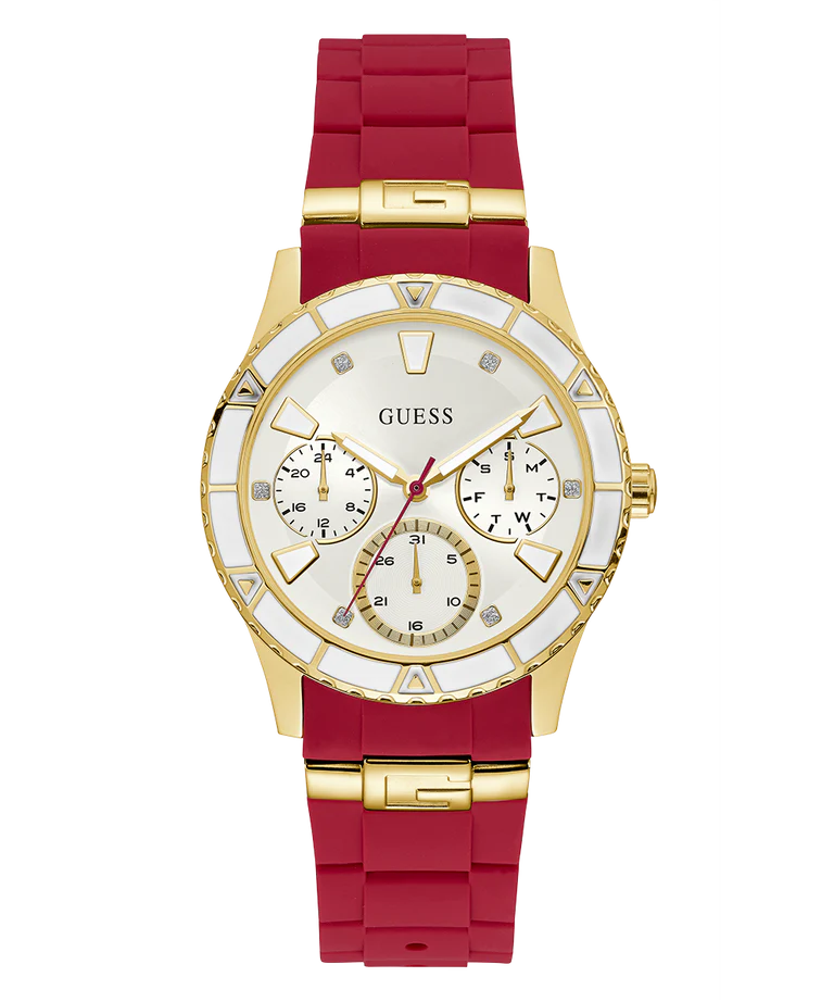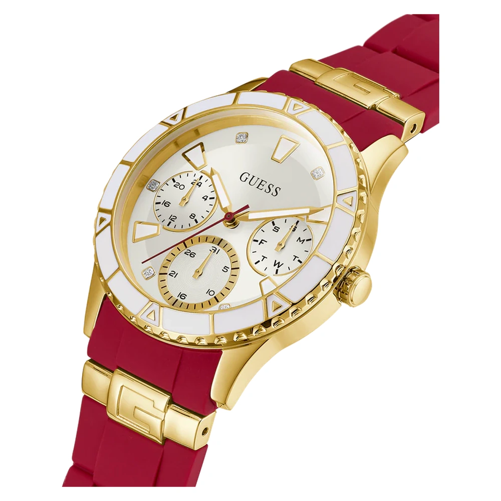 Reloj guess mujer bi tono blanco con dorado correa silicona $169.990